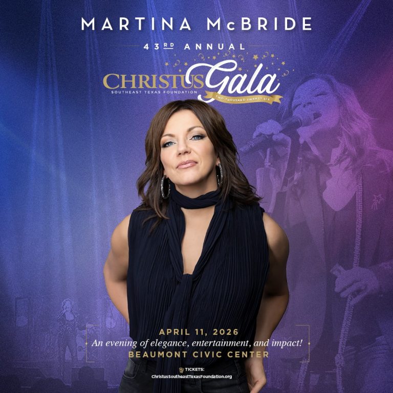 For more than four decades, the CHRISTUS Gala has been a highlight of the Southeast Texas social calendar, drawing supporters from across the region to champion the health and well-being of our community.Guests will enjoy a sophisticated evening featuring a gourmet dinner, table wine, dessert, and live entertainment by Martina McBride, one of country music’s most celebrated and respected voices. Her powerful and intimate performance will be a memorable centerpiece of the evening.