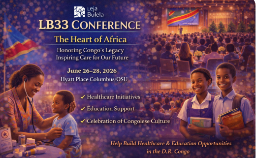 The LB33 Conference will take place from June 26–28, 2026, at the Hyatt Place Columbus/OSU in Columbus, Ohio. This three-day event includes a cultural night, a full conference with speakers, and a fundraising gala. The weekend focuses on celebrating Congolese culture while supporting important programs like healthcare services and education initiatives.